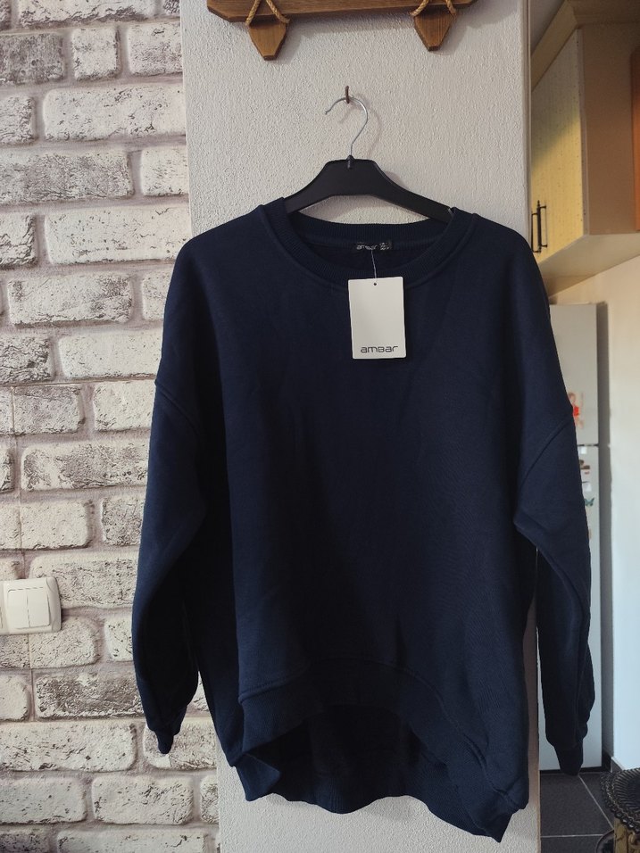Lacivert renkte, yuvarlak yakalı ve uzun kollu, bol kesim sweatshirt. Yumuşak ve sıcak kumaştan yapılmış, gündelik kullanım için uygun rahat bir tarz sunar. ✨