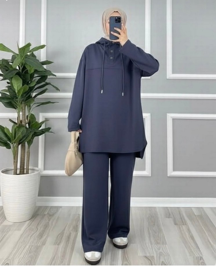 Lacivert Kadın Oversize Uzun Takım