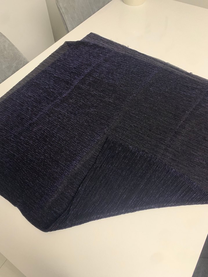 Lacivert renkte, pilili detaylara sahip kadın şalı, yumuşak sentetik kumaştan üretilmiştir, rahat ve modern bir görünüm sunar.