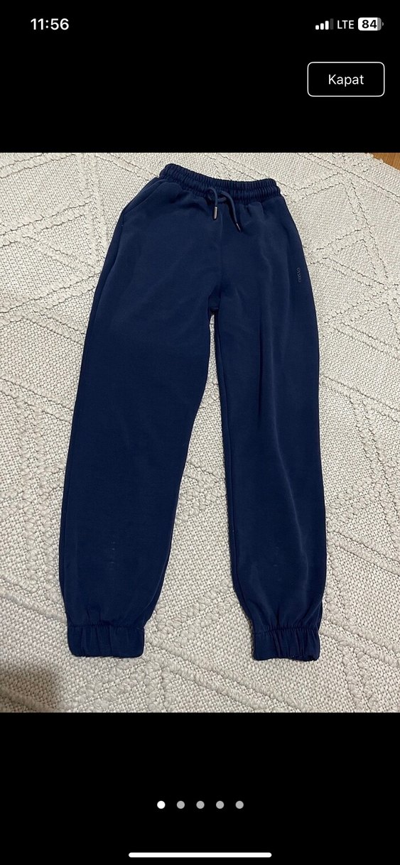 Lacivert, bol kesim, lastikli bel ve paçalarıyla rahat ve şık günlük kullanım için uygun kadın eşofman altı. Bi kez giydim yeni gibi duruyor tertemiz paça kısmında mandal izi kalmış leke vs yok