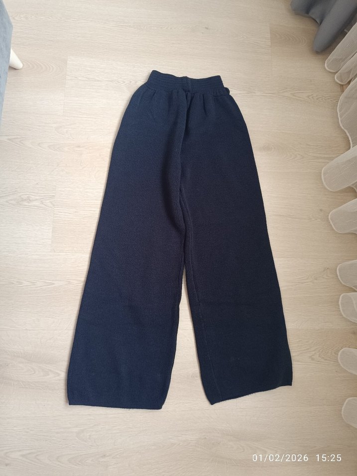 Lacivert, yumuşak ve sıcak kumaştan üretilmiş, rahat kesim midi boy kadın pantolon. Sade tasarımıyla zahmetsiz şıklık sunar. Günlük kullanım için uygundur.
