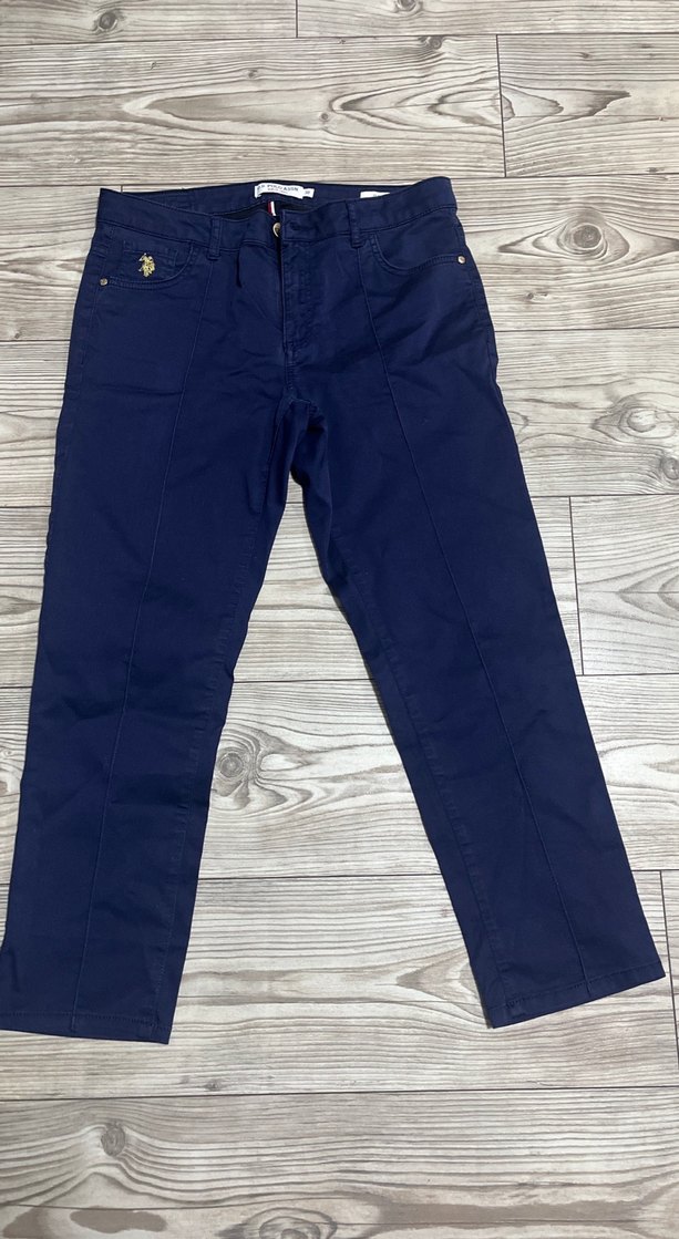 Lacivert renkli, regular fit kesim, denim kumaştan yapılmış, pile detaylı kadın pantolon. Bana küçük geldiği için satıyorum, herhangi bir kusuru yoktur.