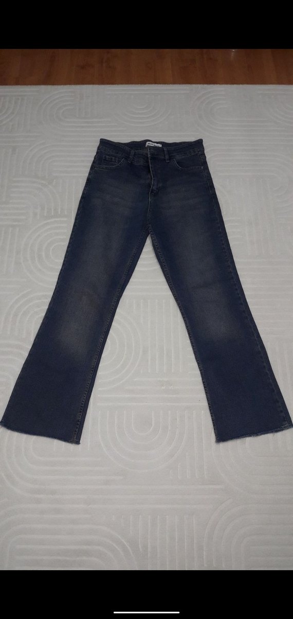 Lacivert kot kumaştan yapılmış, regular fit ve midi boyda kadın pantolonu. Desensiz ve gündelik kullanıma uygun, zahmetsiz şıklık sunar.