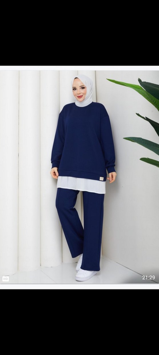 Lacivert renkte, regular fit kesime sahip kadın takımı. Yuvarlak yaka ve uzun kollu, midi boy üst ve rahat pantolon, yumuşak ve sıcak kumaştan üretilmiştir. Rahat ve şık bir görünüm sunar.