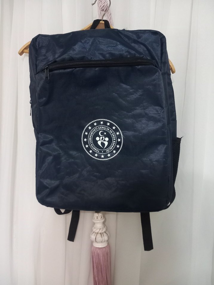 lacivert Kadın Sırt Çantası, Baskılı, Tokalı