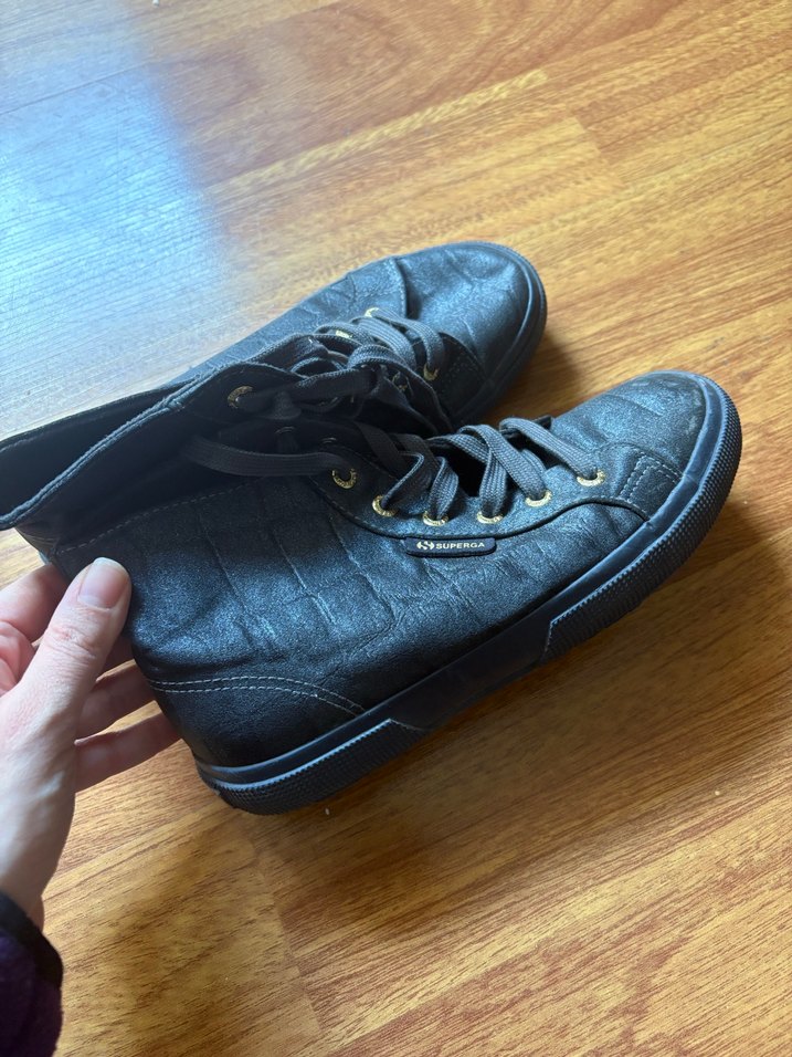 Lacivert renkte kadın spor ayakkabısı. Kauçuk malzemeden üretilmiş, günlük sokak stili ve athleisure için uygun. Orjinal supergadır iki kez giydim tarzım değil
