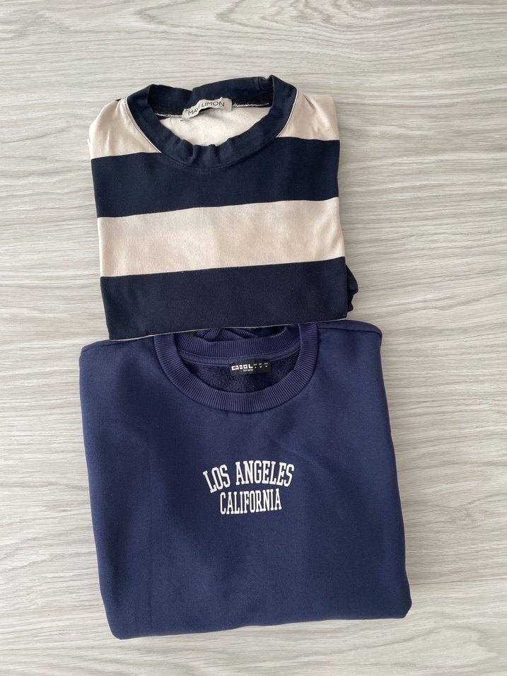Mavi pamuklu sweatshirt, yuvarlak yaka ve uzun kollu, bol kesim. Üzerinde 'LOS ANGELES, CALIFORNIA' baskısı bulunur, gündelik şıklık sağlar. ️ikili fiyat