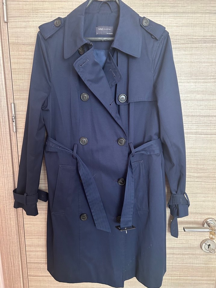 Lacivert renkli, normal boy trençkot. Düğmeli, çentikli yaka sokak stiline uygun günlük kullanıma uygun.
