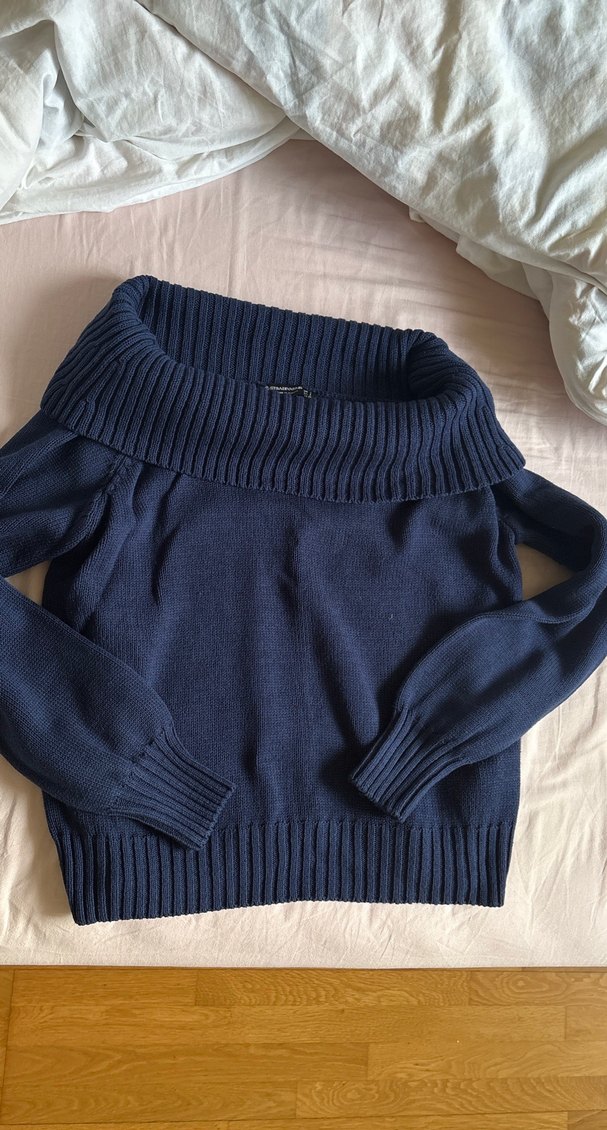 Lacivert kadın triko kayık yaka kazak, uzun kollu ve normal midi boydadır. Rahat ve sade tasarımıyla günlük kullanıma uygundur. Bir kere giydim yikandi yeni gibidir