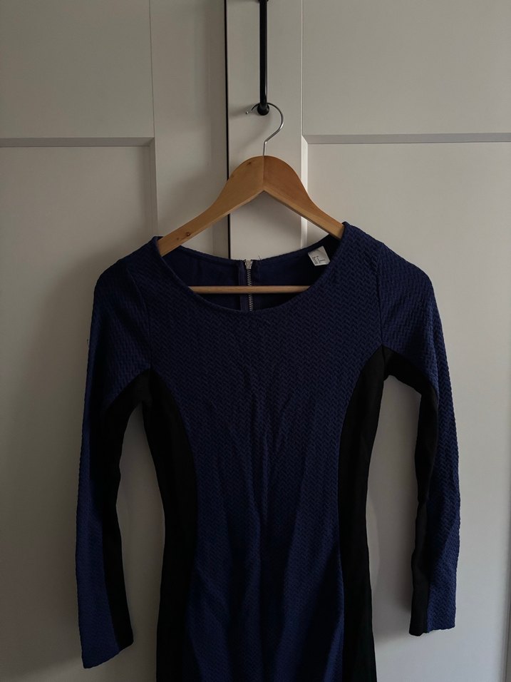 Lacivert renkli, triko dokulu, uzun kollu, bisiklet yaka, midi boy, sade tasarımlı kadın elbisesi. Günlük kullanıma uygun, sokak stilinde şık bir model. Esnek kumaş, vücudun şeklini alır. Yan kısmındaki siyah renkler sayesinde beli daha ince gösterir. Gerçek rengi ilk fotoğraflardaki gibidir