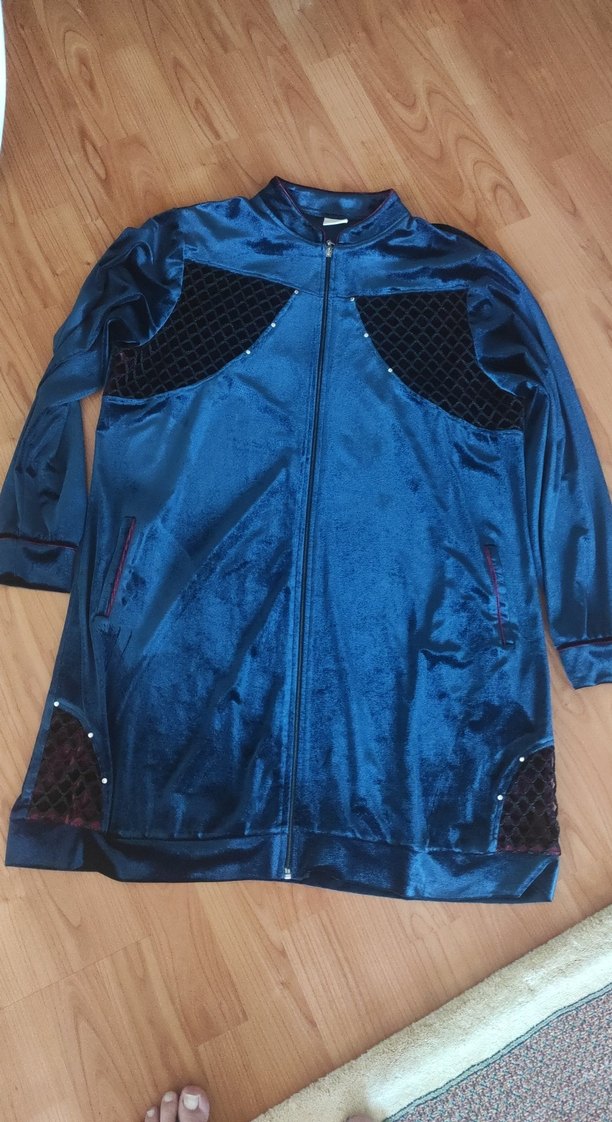 Bu dar kesim kadın ceketi, yüksek yakalı ve uzun kolludur. Yumuşak, sıcak kumaştan yapılmış koyu mavi renkte, fermuarlı cepleri ve siyah kadife görünümlü panelleri vardır. Gotik ve athleisure tarzlarını birleştirir.