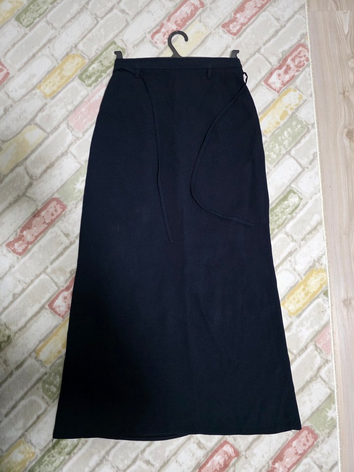 Lacivert renkli uzun etek, içi astarlıdır. Etiket üzerinde beden 38 yazmaktadır; ancak mezura ile yapılan ölçüme göre yarım bel ölçüsü 34 cm, etek boyu 97 cm’dir. Az kullanılmıştır. Tesettürlü bayanlar için daha idealdir.