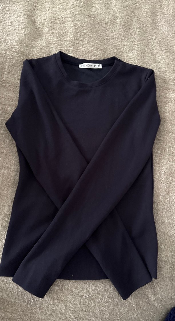 Lacivert kadın kazak, yuvarlak yaka ve uzun kollu. Vücuda oturan, normal boyda, düz ve sade tasarımlı, günlük kullanım için uygun.