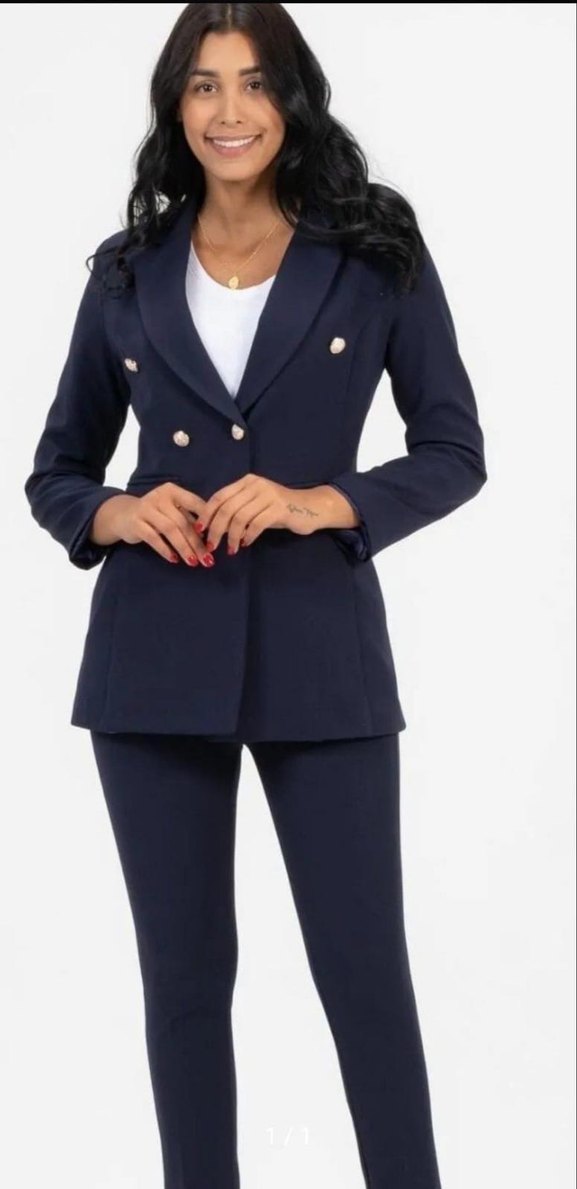 Lacivert Kadın Uzun Kollu Düğmeli Blazer ceket ve pantolon