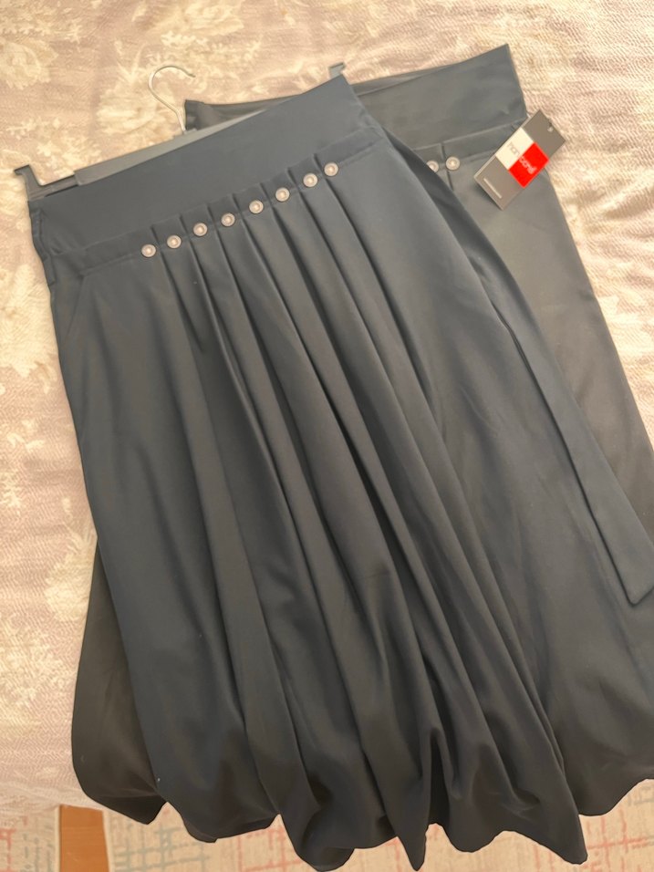 Pilili ve bol kesim lacivert uzun etek, sentetik kumaştan üretilmiştir. tarzı yansıtır, günlük kullanım için uygundur.