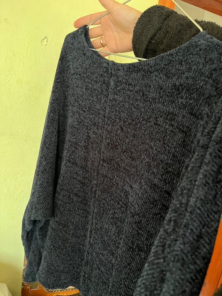 Lacivert renkli, yuvarlak yakalı ve uzun kollu yün kazak. Rahat kesimi ve örme dokusu ile günlük kullanıma uygundur.