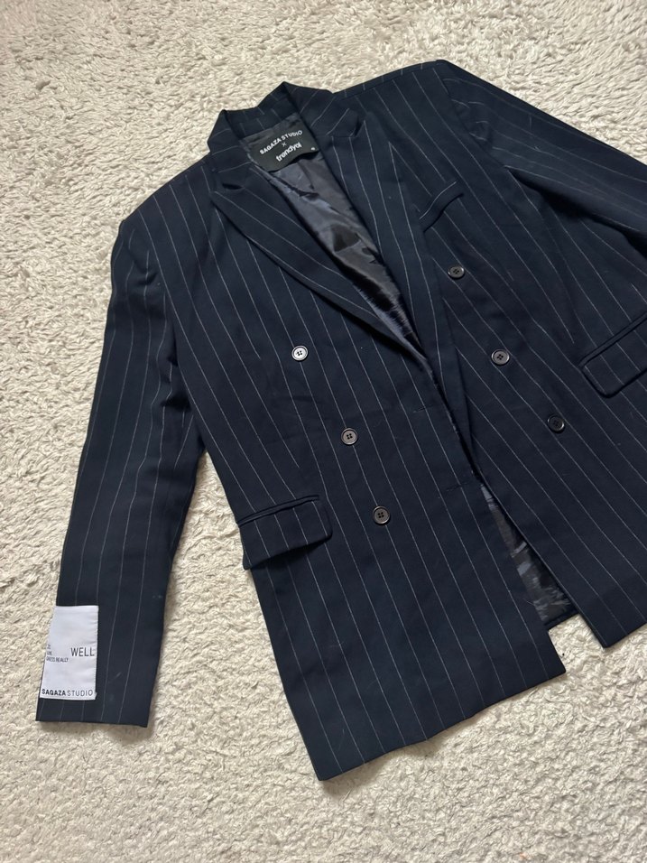 Lacivert yün kadının midi boy, uzun kollu, düğmeli ve klasik yakalı blazerı. Ofis ve günlük şıklık için ideal. ✨