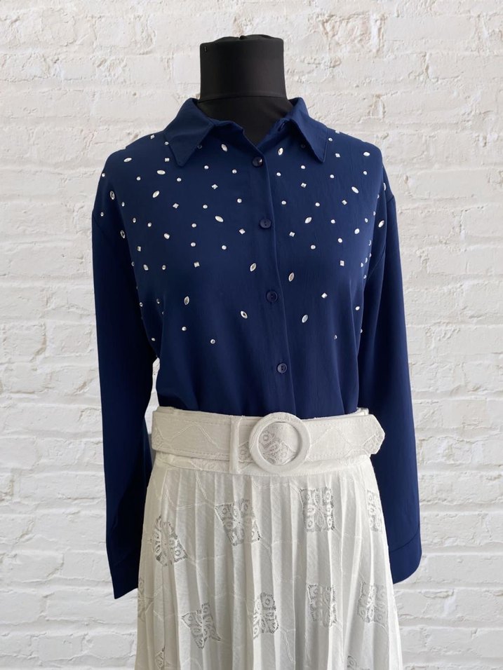 Lacivert kalın şifon gömlek BÜYÜK BEDEN