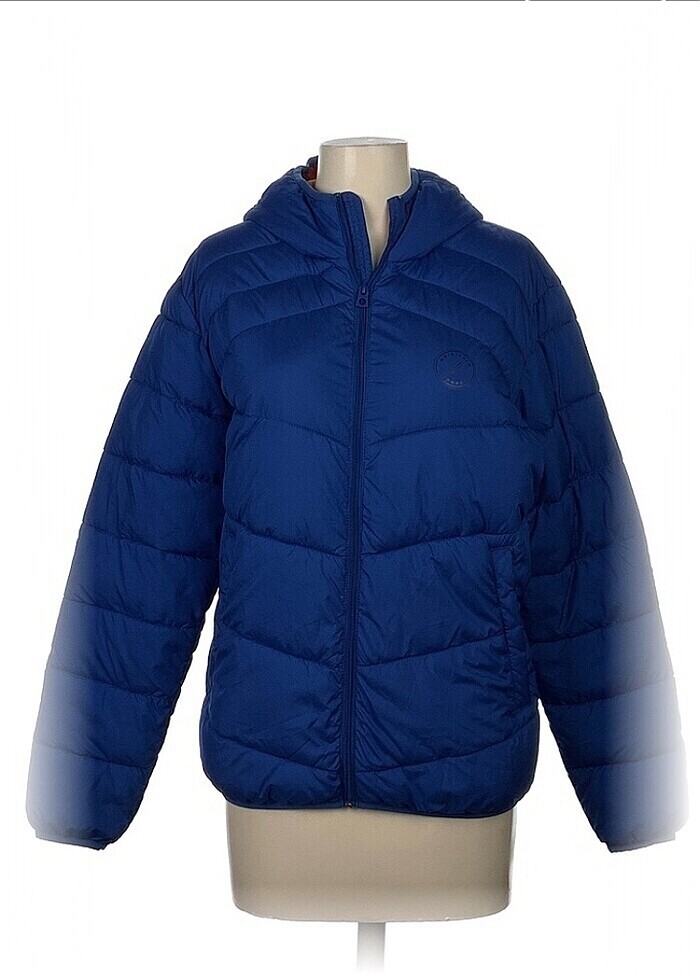 Lacivert kapüşonlu cepli şişme mont