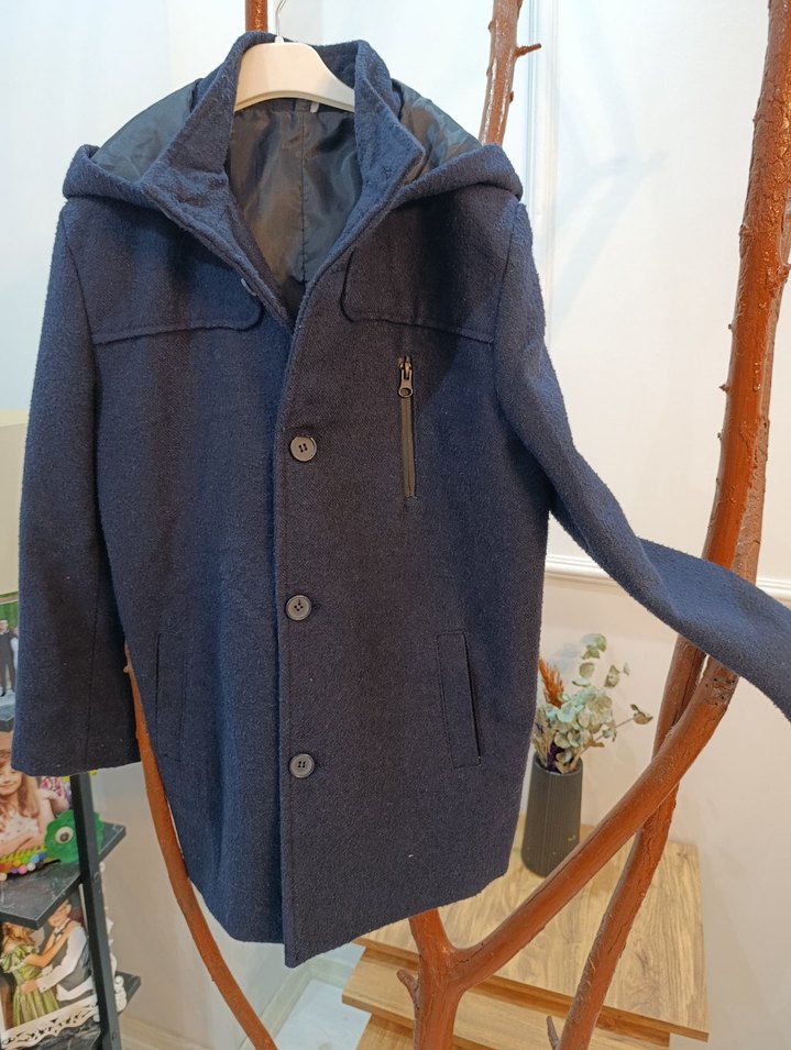 Lacivert Kapüşonlu Erkek Çocuk Kaban