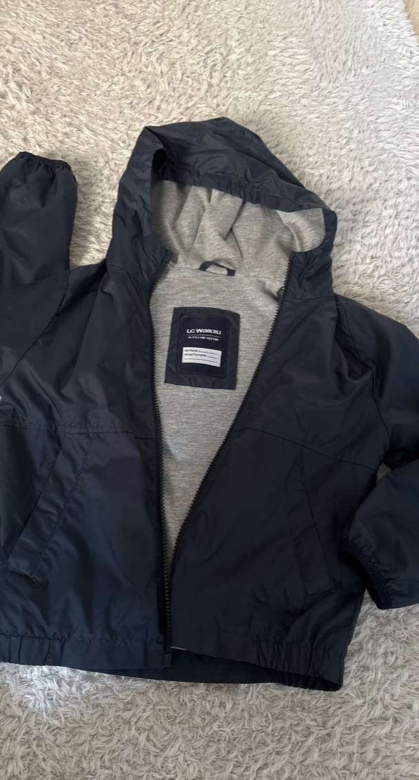 Bu erkek çocuk montu kapüşonlu ve fermuarlıdır, bol kesimlidir. İç kısmı yumuşak gri fleece, dışı ise düz yağmurluk dokuludur. Rahat kullanım sağlar. ️