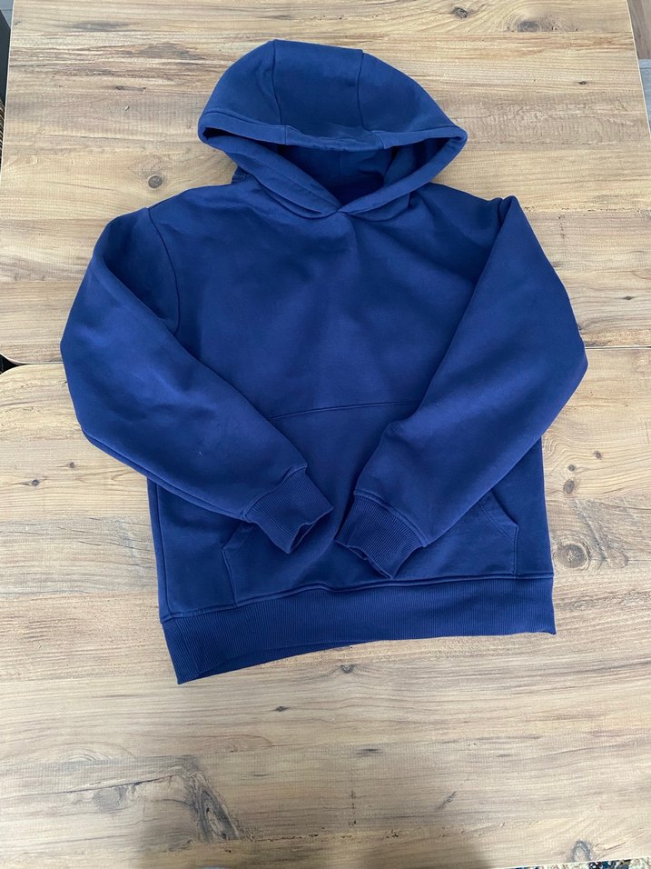 kapüşonlu ve uzun kollu, yumuşak ve sıcak kumaştan yapılmış lacivert sweatshirt. Salaş kesimi ve günlük kullanım için uygundur. pazarlık vardır
