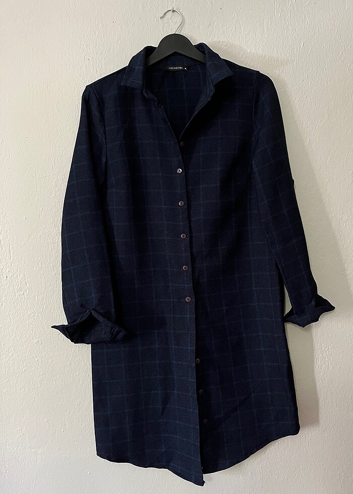 Lacivert kareli gömlek elbise