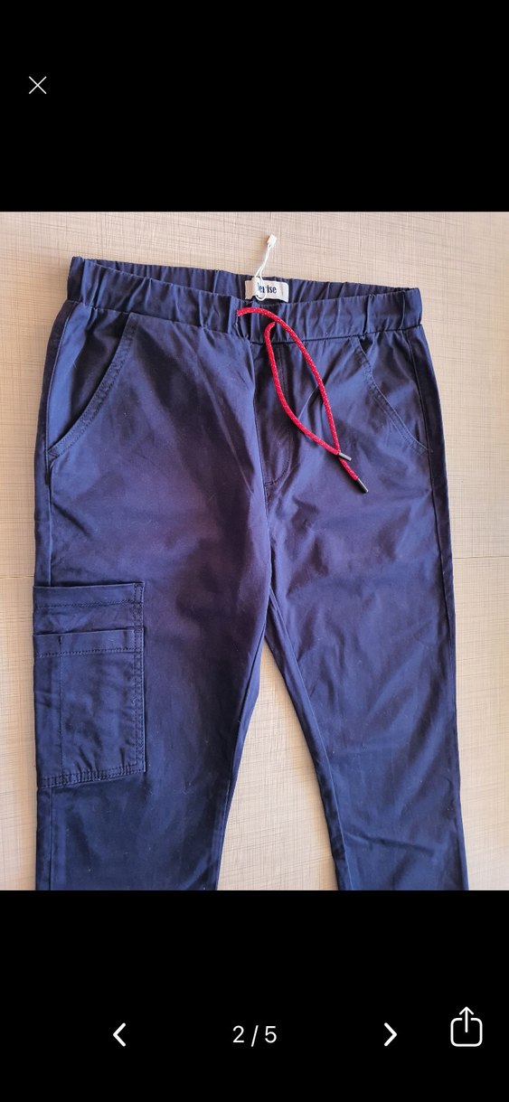 Lacivert kargo midi pantolon ,cep detaylarıyla kullanışlı bir kesime sahiptir. Nefes alan koton kumaştır. Lastikli bel ve lastikli paçalıdır.Sayılı kulanıldı.Sorunsuzdur