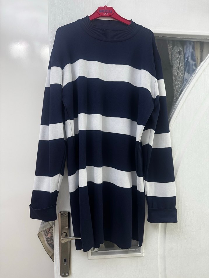 Çizgili merserize kumaş çok rahat efil efil büyük beden uyumlu 42-44 marka temsilidir İki kol arası 54 cm Boy 77 cm