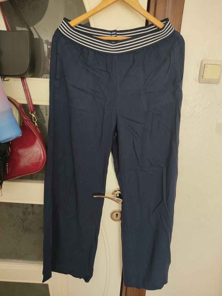 Lacivert Kemerli Bol Kesim Keten Pantolon