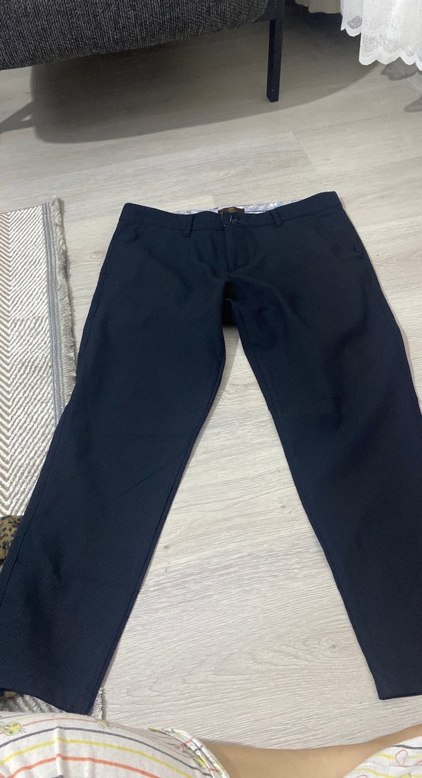 Lacivert renkli, normal boy ve regular fit kesime sahip kemerli denim pantolon. Günlük rahat kullanıma uygundur.