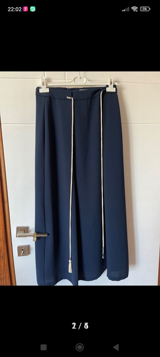 Kadınlar için uzun, regular fit lacivert kumaş etek, kemerli ve yumuşak sentetik kumaştan yapılmıştır. Ofis kullanımı için uygundur.