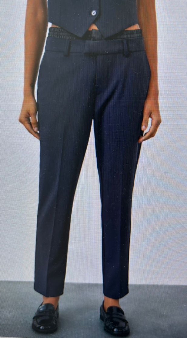 Lacivert Kemerli Kadın Kumaş Pantolon
