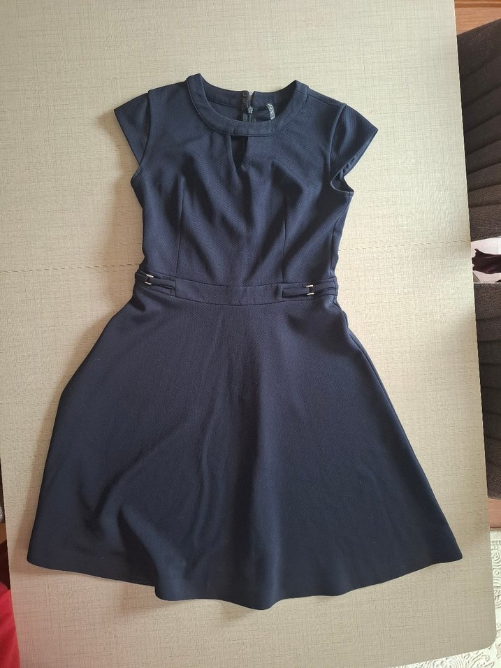 Lacivert Kemerli kisa Elbise
