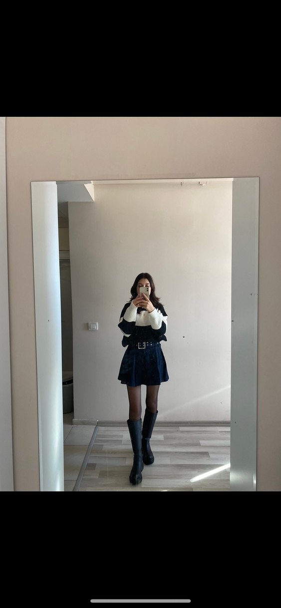 İçi şortludur. 34 36 bedene uygundur. Kemerli etek. Çok şık duruyor eskisi kadar giymediğim için satıyorum kusuru yok.