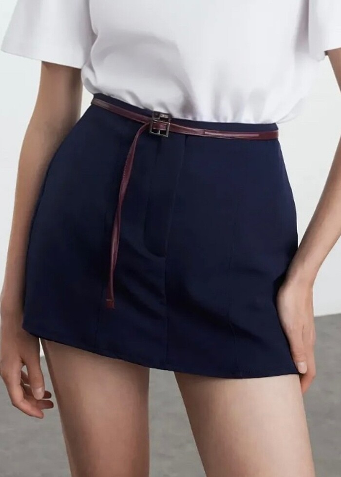Lacivert Kemerli Şort Etek