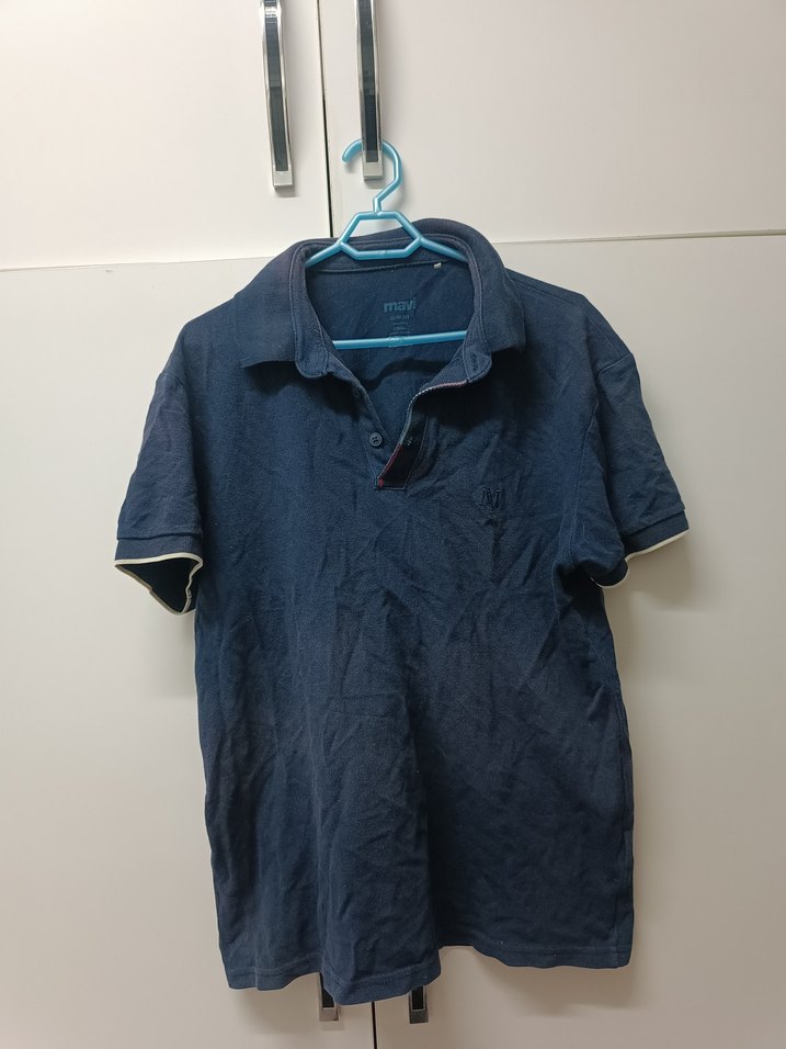 Bu erkek polo tişörtü, yakalı ve kısa kolludur. Nefes alan keten kumaştan üretilmiş, bol kesim ve düğmeli ön detayına sahiptir. Günlük rahat kullanıma uygundur. Düz lacivert renklidir, gri detaylar bulunur.