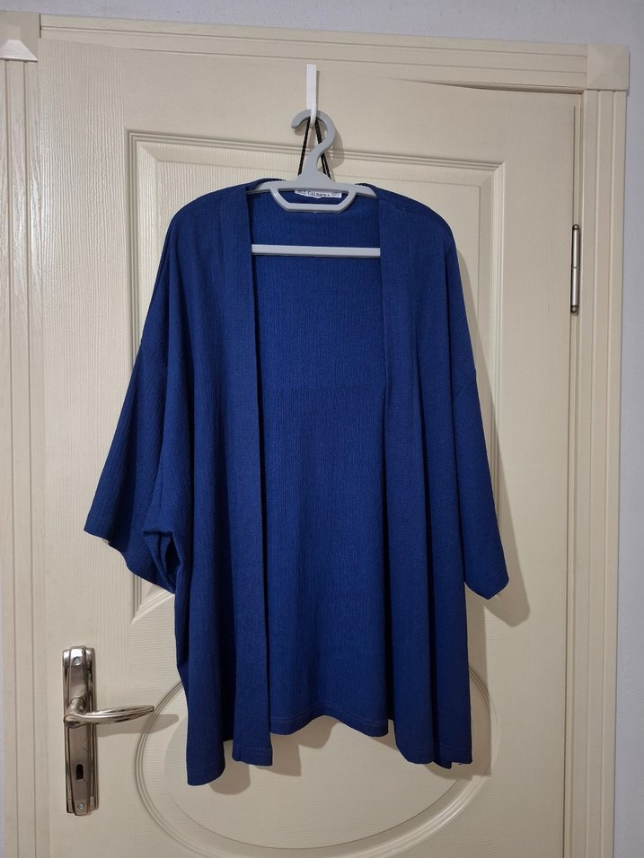 örme kumaş lacivert kimono az kullanıldı defosu yok standart kol
