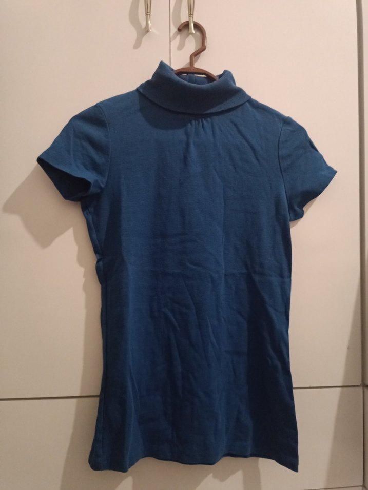 Lacivert, boğazlı ve kısa kollu, yumuşak kumaştan yapılmış kızlar için fitted polo tişört. Sokak modasına uygun, rahat ve şık bir tasarım.