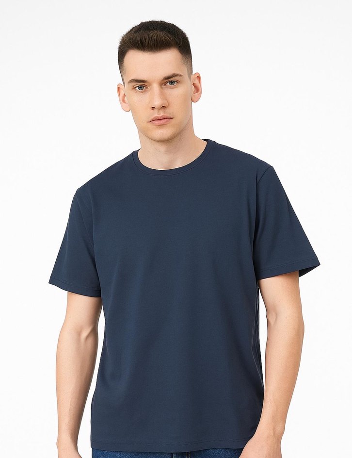 Lacivert kısa kollu, bisiklet yaka, regular fit erkek tişörtü. Denim kumaştan üretilmiş, günlük kullanım için rahat ve şık sokak stili sunar. Bedenleri s/m/l/xl bedenleri mevcuttur
