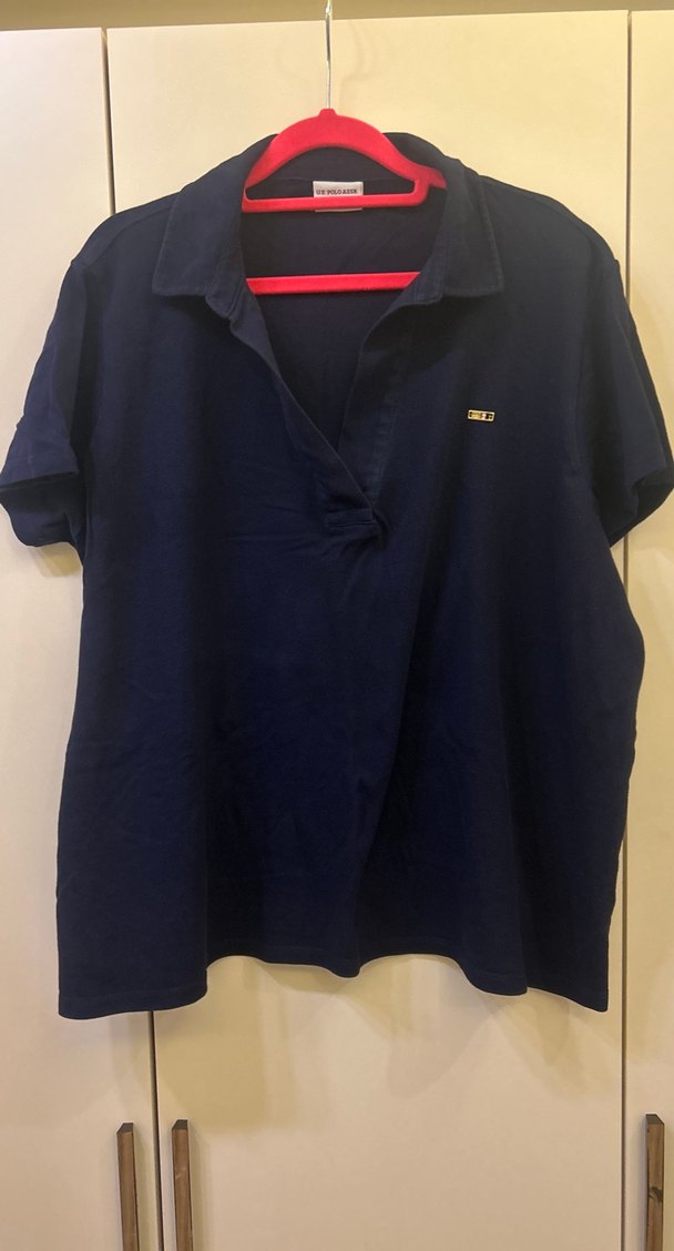 Lacivert,kısa kollu ve yakalı kadın t-shirt. Düğmeli, bol kesim ve günlük rahat sokak stili için uygundur.