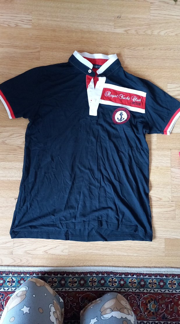 Pamuklu lacivert, kısa kollu, dar kesim polo tişört. Düğmeli yakası ve baskılı amblemleriyle sportif sokak stili için uygundur. ⚓