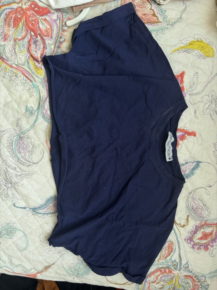 Lacivert renkte, kısa kollu ve yuvarlak yaka