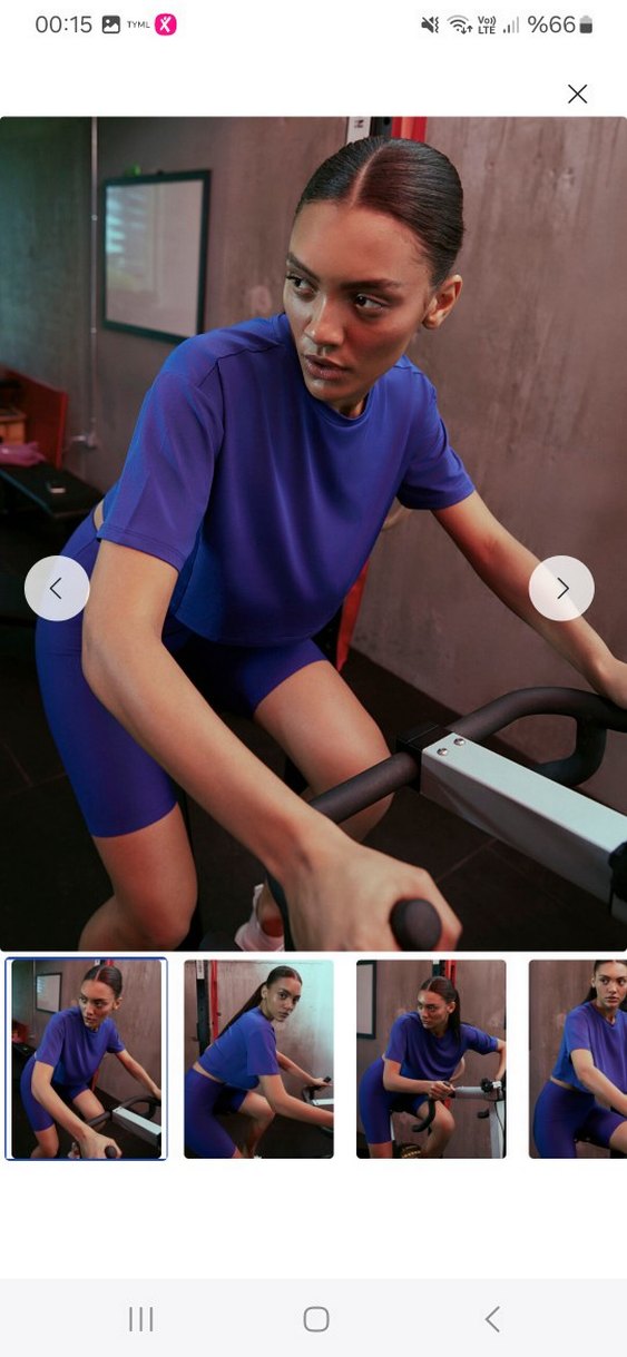 kısa kollu ve bisiklet yaka tasarımlı, sentetik kumaştan yapılmış, kısa kesim spor üstü. ️♀️