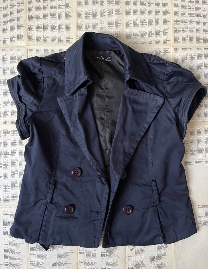 Çok tatlış bir ceket. İki yerinde leke var görsellerde belirttim, bide ipleri çok iyi temizlenmemiş onun dışında hiçbir kusuru bulunmuyor. Ölçülerine bakarak alabilirsiniz#ceket #kısakollu #vintage #lacivert #Blazer #romanticstyle
