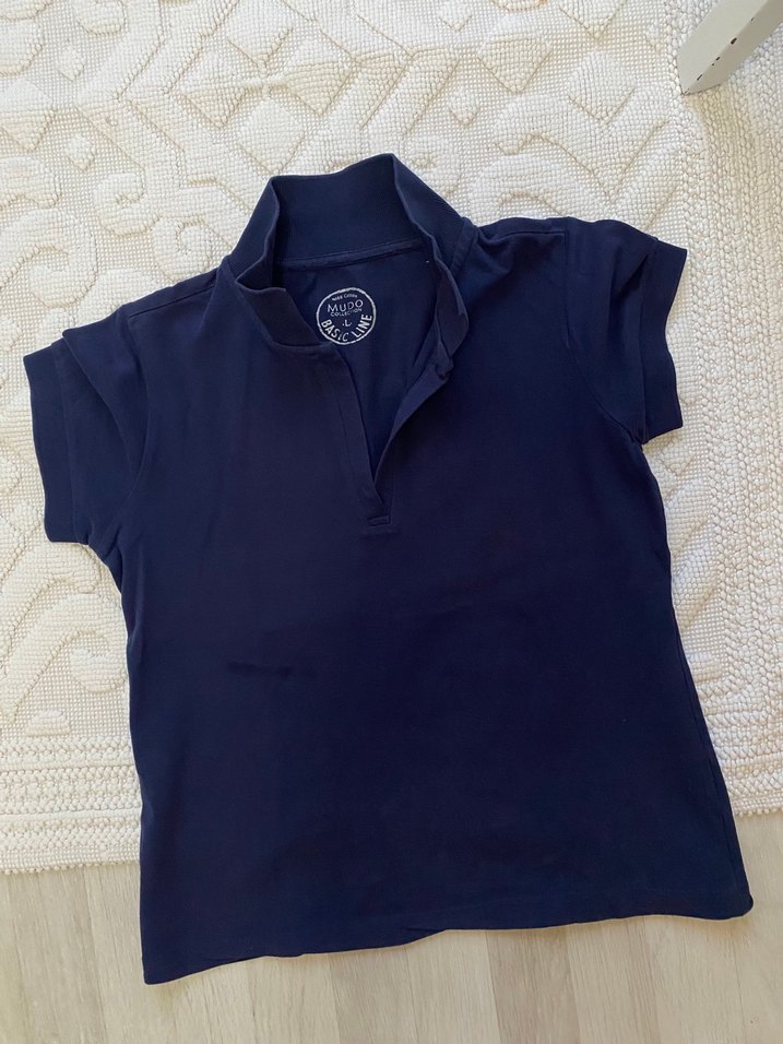 Lacivert pamuklu kumaştan, yakalı ve kısa kollu, fitted kesim kız çocuk polo tişört, sokak modasına uygun şık bir görünüm sunar.son fotoğrafta lekesini ekledim