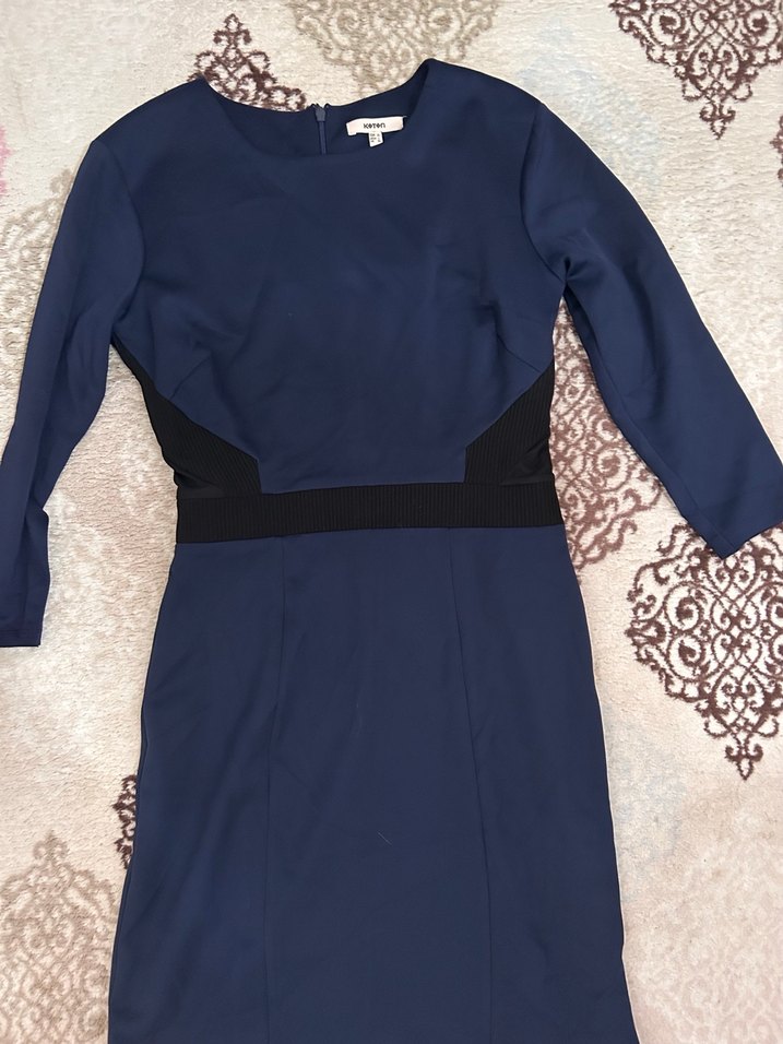 Uzun kollu, kemer görünümlü bel detayı V yakalı lacivert dar kesim elbise. Ofis ve günlük kullanım için uygun xl beden ama dar kalıp m-l uyumlu