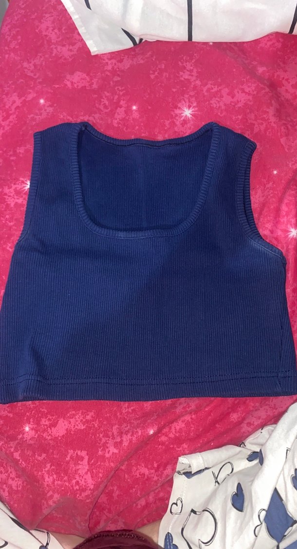 Koyu mavi renkte, yumuşak ve sıcak kumaştan yapılmış, kolsuz ve dar kesim atlet. Düz tasarımıyla sokak modasına uyum sağlar.