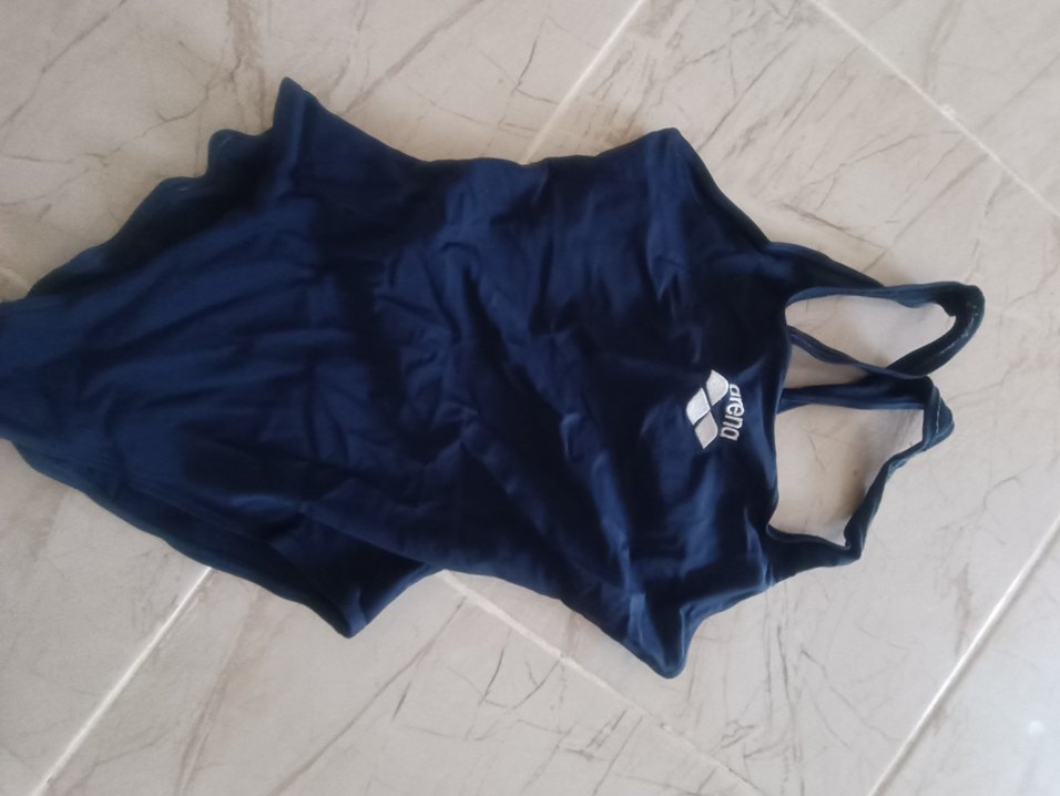 Lacivert renkte, kolsuz ve vücuda oturan kadın mayo, midi boy uzunluğunda. Rahat ve sade tasarımıyla plajda şık bir görünüm sağlar.