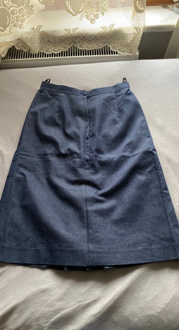 Lacivert kot kumaştan yapılmış, kemerli ve regular fit eteği. Düz, sade ve dayanıklı kumaş kullanılmış.